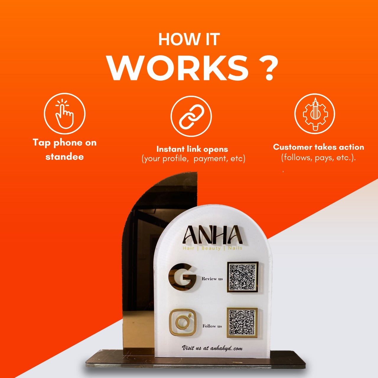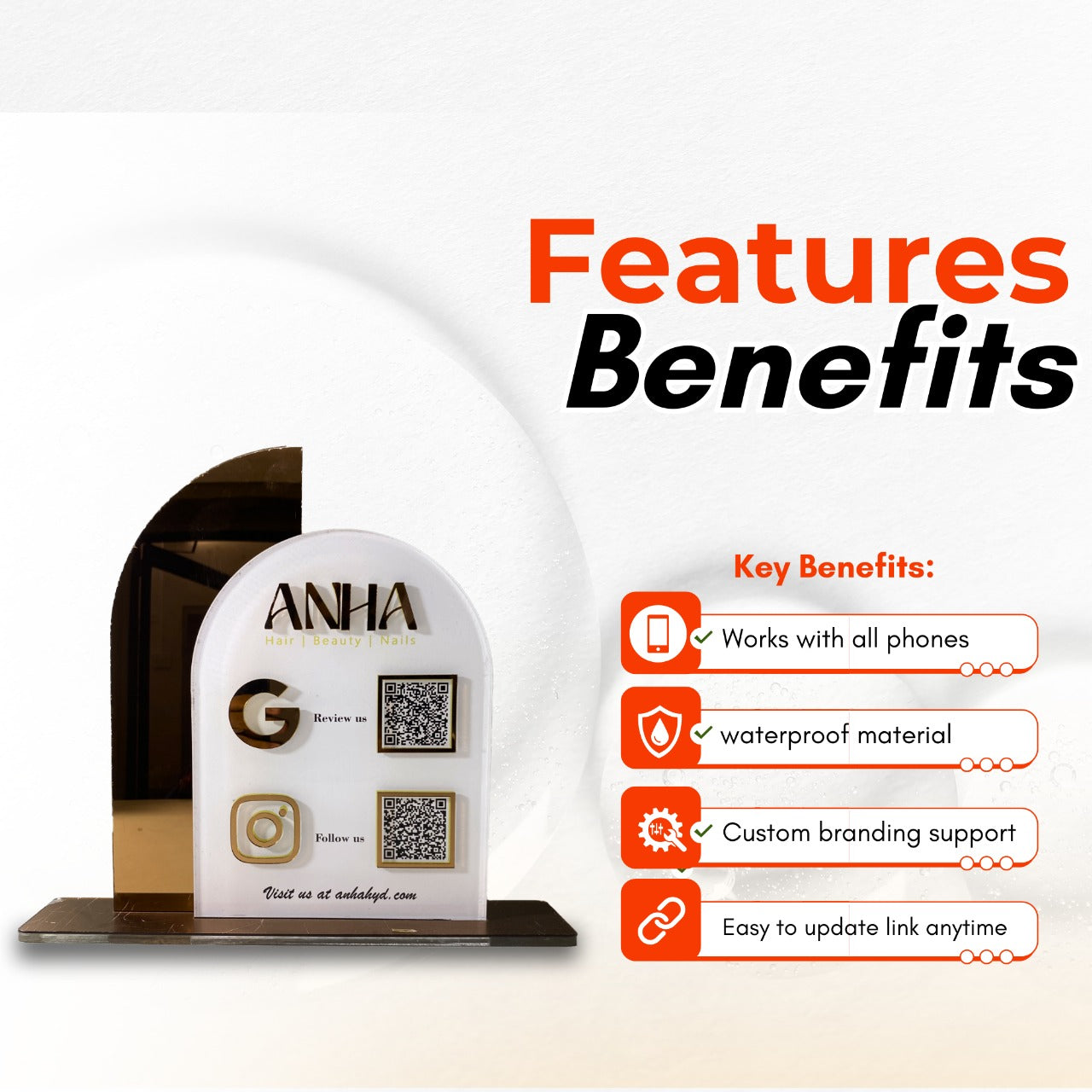Enhance your salon’s client experience with the QR Acrylic Standee.