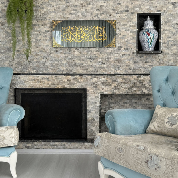 Elevate your home with the profound message of our Mashallah La Quwwata illa Bi-llahi Acrylic Islamic Wall Art, an embodiment of divine acknowledgment and humility. This stunning piece, featuring the phrase 'Mashallah, there is no power except with Allah,' represents a powerful expression of faith and dependence on divine will. Beautifully crafted in Islamic calligraphy, it brings the wisdom of the Quran into everyday spaces, making it a meaningful piece of Islamic art and Quran wall art. Ideal as a meaningful accent for Ramadan Decor, it also resonates beautifully during Eid Mubarak, capturing the true spirit of Islamic art and decor. Add a touch of Islamic charm to your walls with this exquisite artwork, perfect for Muslim prayer areas, living rooms, or as a unique gift for believers.