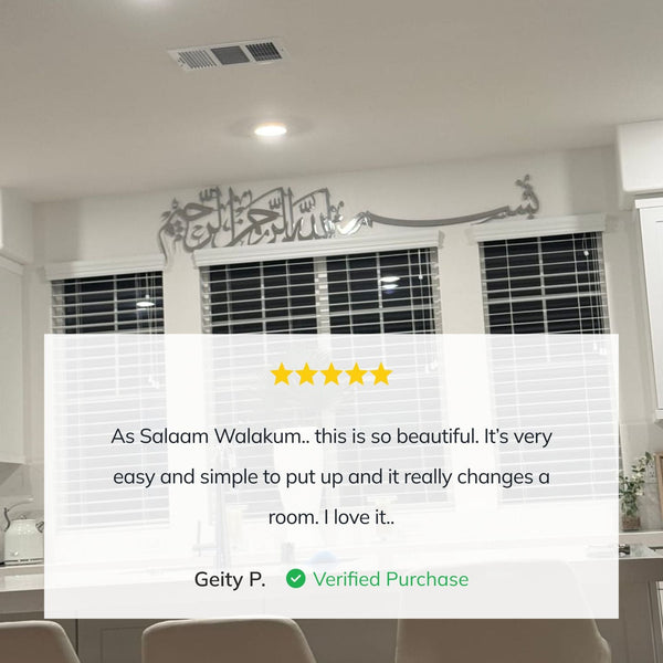 This elegant Bismillah Islamic Wall Decor, crafted from superior quality metal, offers both durability and sophistication for any room. Ideal for Ramadan decor, Eid Mubarak, or as a thoughtful Muslim gift, it enhances home decor with its beautiful Islamic design.